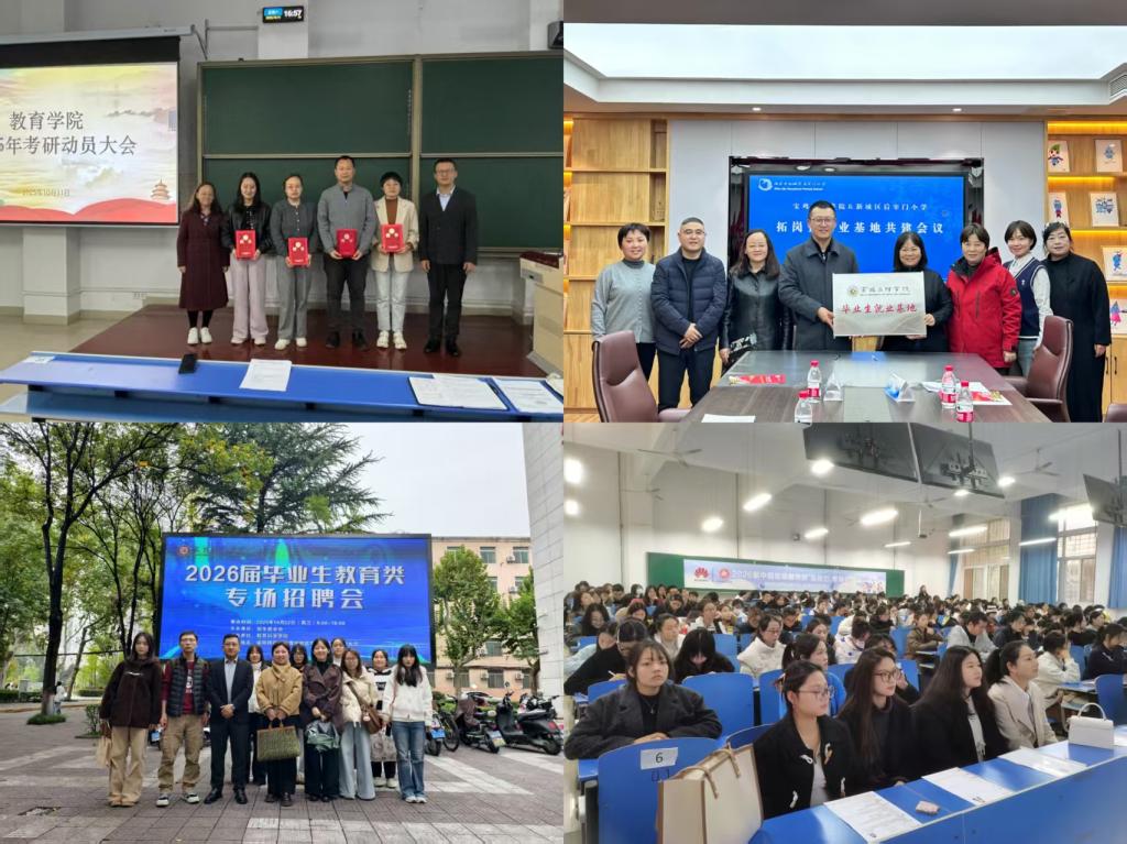 分层递进,精准开展多元指导。教育学院聚焦毕业生就业全周期成长,打造“技能+实践”分层培养课程,着力构建“低年级规划、中年级储能、高年级精准冲刺”的阶梯式培养体系。聘请优秀校友及行业先锋担任校外就业指导师,入校分享职场经验与行业动态,让学生直观了解不同职业的发展路径与能力要求。将《大学生职业生涯规划》《大学生学业规划》《大学生创业就业指导》三门课程教学作为关键抓手,搭建“全程化、系统化、精准化”育人实践课堂,帮助学生适应从校园“小课堂”走向社会“大课堂”。
