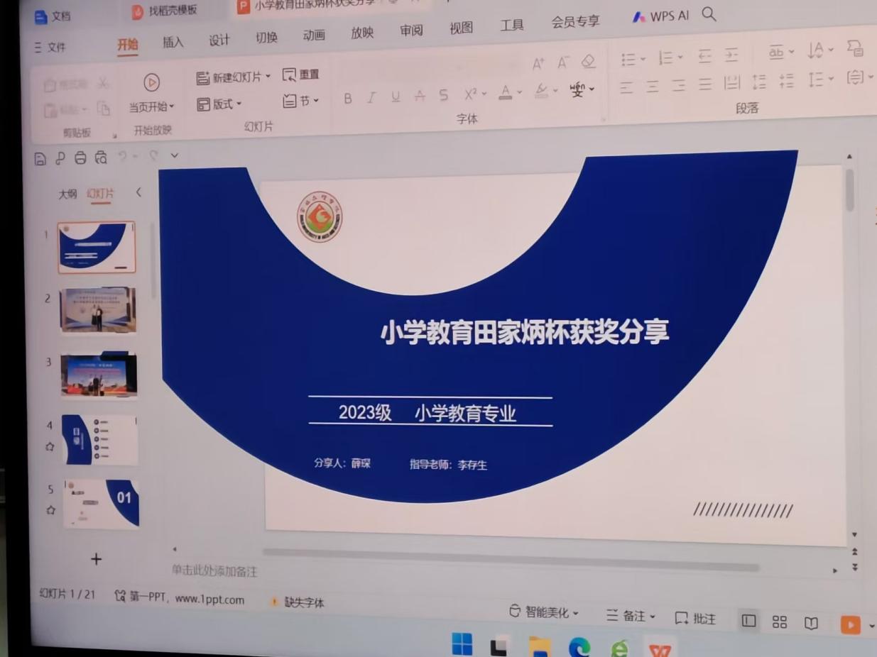 2024年11月7日,2024级小学教育专业全体研究生在立心楼326教室举行全国“田家炳杯”教学技能大赛分享研讨活动。2024年全国“田家炳杯”教学技能大赛小学教育领域二等奖获得者薛琛同学深情款款的分享了比赛历程,24级小学教育全体同学进行了研讨。