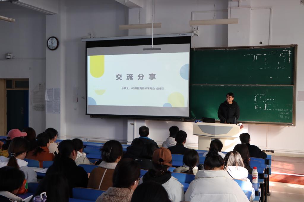 赵志弘校友同与会师生分享了自己的求学历程、工作履历和创业经历,为教育学和教育技术学专业学生提供了毕业后的基本就业方向,展示了其他校友给在校大学生的建议,希望同学们做好学业规划,大学四年不要虚度,努力提升个人综合素质能力,为毕业季求职和升学打下坚实基础。会后,赵志弘校友与在校生进行了亲切互动,现场解答了同学在生涯规划和就业创业方面的疑问。