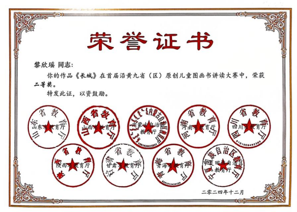 近日,由山东省教育厅联合山西、内蒙古、河南、四川、陕西、甘肃、青海、宁夏等省(区)教育厅共同举办的第二届沿黄九省(区)原创儿童图画书素材创意大赛、首届原创儿童图画书讲读大赛落下帷幕。我院选送2件作品获奖,学前教育专业黎欣瑶同学的作品《长城》获原创儿童图画书讲读大赛二等奖,肖怡萌、成豆豆同学的作品《虎头鞋》获原创儿童图画书素材创意大赛优秀奖。