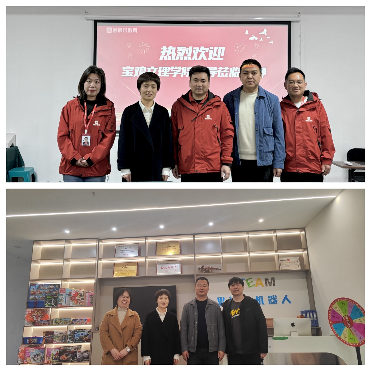 3月21日下午,院党委书副书记屈金梅、副院长赵亮、刘敏娜博士和就业工作辅导员米艳龙一行走访宝鸡金标尺教育公司和思谛姆机器人教育学校。