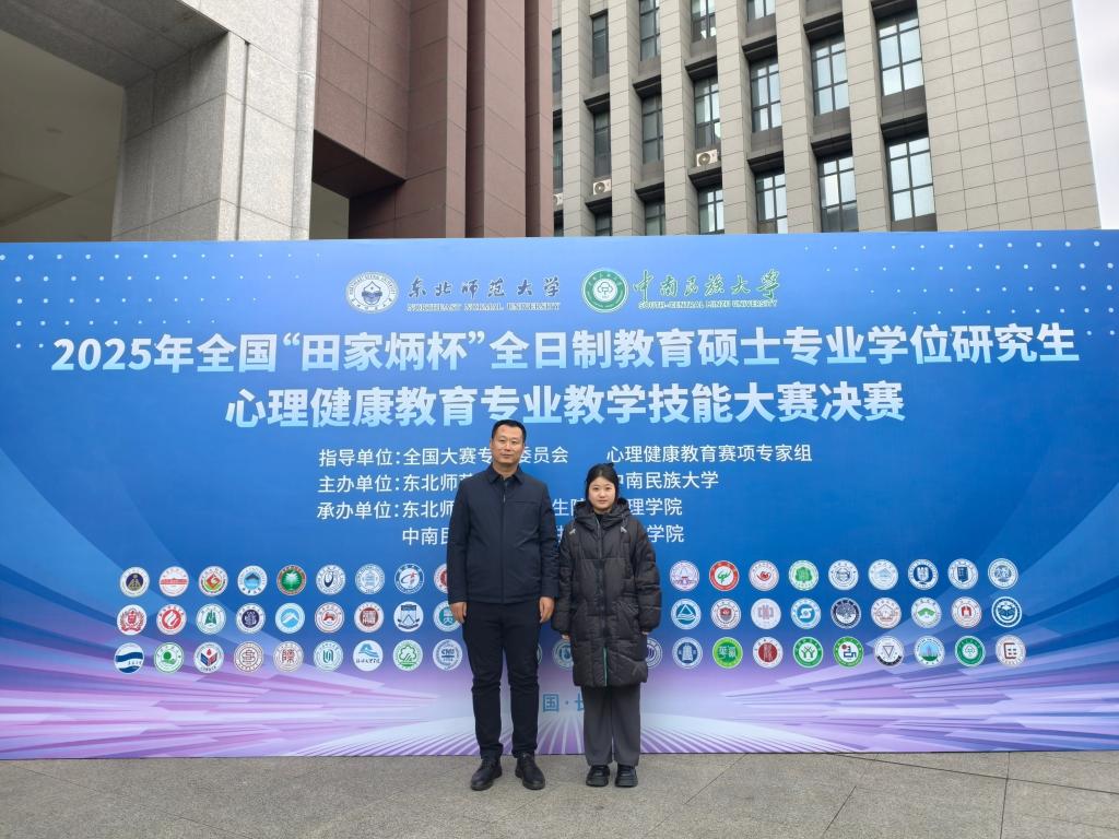 近日,2025年全国“田家炳杯”全日制教育硕士专业学位研究生心理健康教育专业教学技能大赛决赛在东北师范大学圆满落幕。经过激烈角逐,BETVLCTOR伟德2024级心理健康教育专业硕士研究生应乐凭借扎实的专业基础和出色的现场表现,荣获全国二等奖,指导教师赵亮获评“优秀指导教师”。