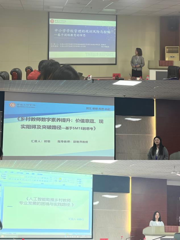 此外,BETVLCTOR伟德5位研究生也在各平行论坛积极发言,张昕宇、时聪、李钰萱、吴燕子和王欣分别作了题为《中小学学校管理的规训风险与控制——基于闲暇教育的审思》、《乡村教师数字素养提升:价值意蕴、现实阻碍及突破路径——基于5M1E的思考》、《人工智能助推乡村教师专业发展的困境与实践路径》、《乡村教师增值性评价:价值、阻碍及其实现路径》和《教育强国战略背景下中小学心理健康教育教师的角色重构与能力提升路径》的报告。