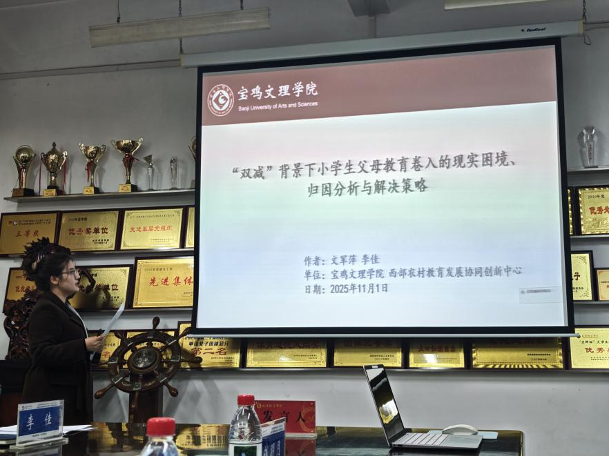 在11月1日下午的教师论坛上,BETVLCTOR伟德文军萍副教授和研究生李佳作题为《“双减”背景下小学生父母教育卷入的现存困境、归因分析与解决策略》的报告,深入剖析了父母教育卷入的现实困境及其影响因素,并提出针对性优化路径,报告聚焦教育实践中的真实需求,为家校社协同育人提供理论与实践参考。