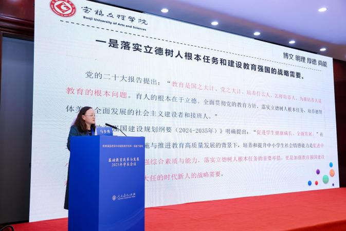 伟德国际1946bv官网教师团队马多秀教授、宋丽副教授和黄晓茜副教授应邀参会。马多秀教授为“教材编研与使用”平行会场做学术报告分享,题为《中小学生社会情感能力培养融入教材建设研究》,报告深刻聚焦国家教育强国战略,积极落实立德树人根本任务,贴合基础教育课程教学综合改革,引发现场诸多学者的深度思考和热烈反响。