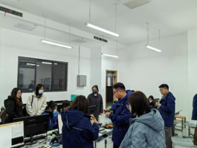 活动伊始,高新三小信息科技教师苗斌老师带领研究生们参观了该校颇具特色的“创客工坊”。在苗斌老师的引导下,大家近距离接触了3D打印设备、人工智能教学器材以及各类实验平台。苗斌老师系统介绍了三小学生的在创客及各类科技作品大赛中取得得成果,如助力残奥会的智能升降台模型、解决实际停车难题的远程车位管理系统、农业智能灌溉系统等,充分体现了学生将知识转化为解决现实问题能力的培养成果。