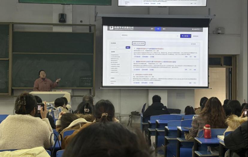 蔚慧老师以维度学术资源在线数据库为主题,围绕中外文献检索与阅读,如何快速获取文献全文,核心期刊收录体系导航,追踪期刊发文研究方向,高效选择投稿期刊,AI辅助科研工具等核心要点展开讲解。对从何从图书馆资源访问并使用数据库进行了示范说明。同时分享了悟源科研服务平台,该平台从科研助手、智能检索、学术翻译等功能出发,助力提升科研学习的多样性和创造性。