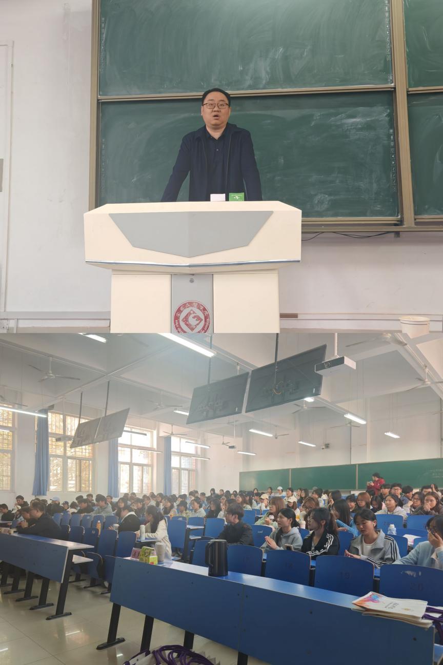 2026年4月1日,伟德国际1946bv官网在立心楼110教室举办“爱心接力·榜样领航”优秀校友经验分享会。学院党委书记郝鑫、党委副书记王小敏出席,优秀校友姚玉玮与150余名师生共同参加活动。